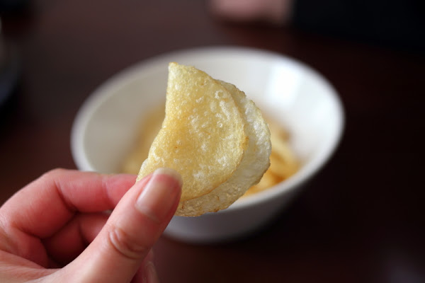 低温でじっくり揚げるケトルフライ(釜揚げ)法で作られたチップスで、やや厚めのスライス。